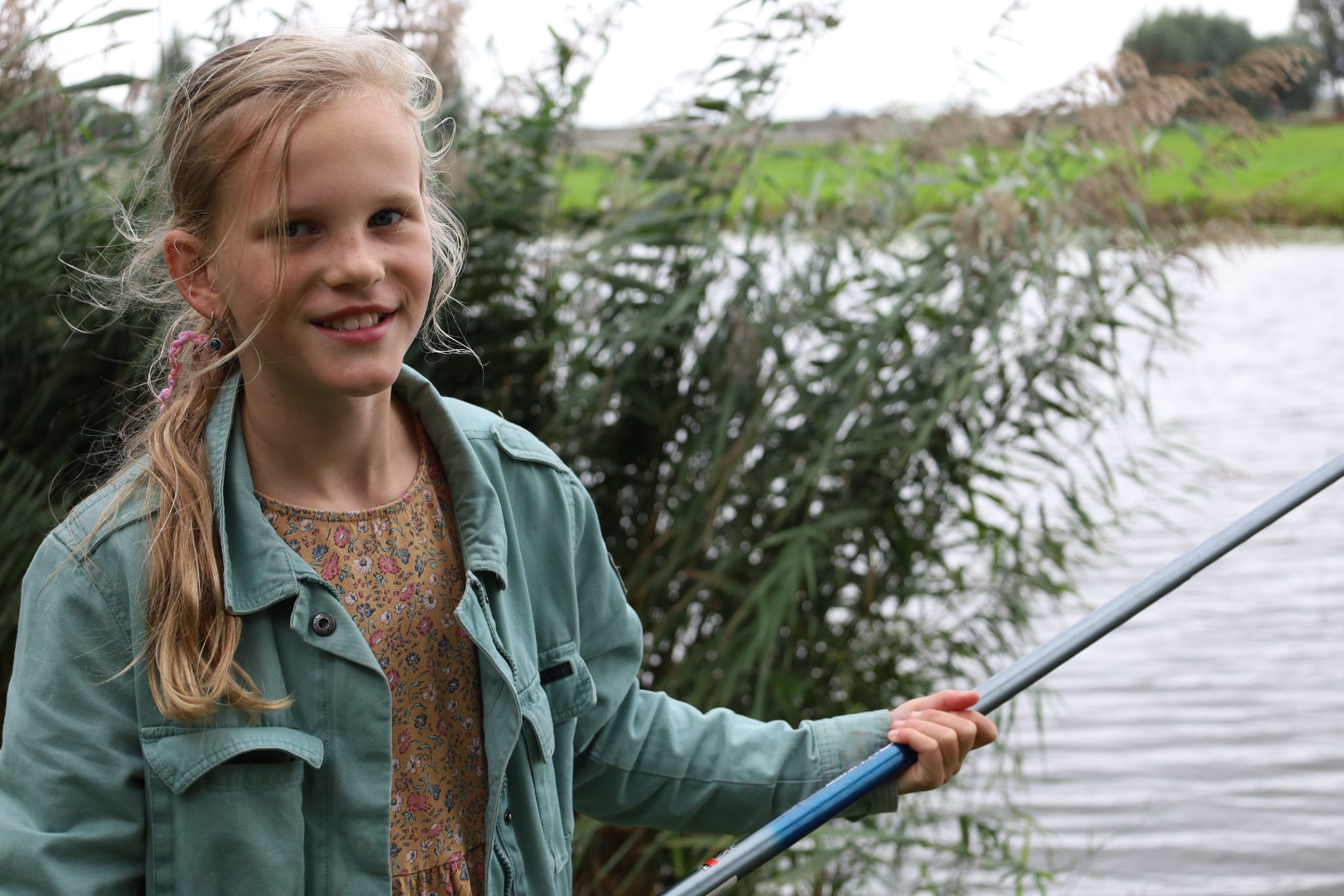 Er werden kleine visjes gevangen maar één jongen riep hard, ik heb een vis en wel een hele grote brasem van 51 cm. Geweldig en alle kinderen kwamen kijken.